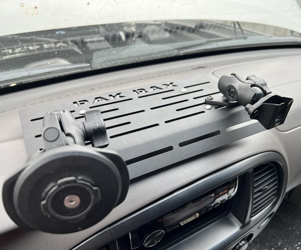 Now you can enjoy infinite solutions for your dash accessories! Designed to also work with RAM mount products & accessories. Can be mounted to any dash but drilling holes (4) is required. Measurements are 11 1/2 inches in length by 5 inches wide.